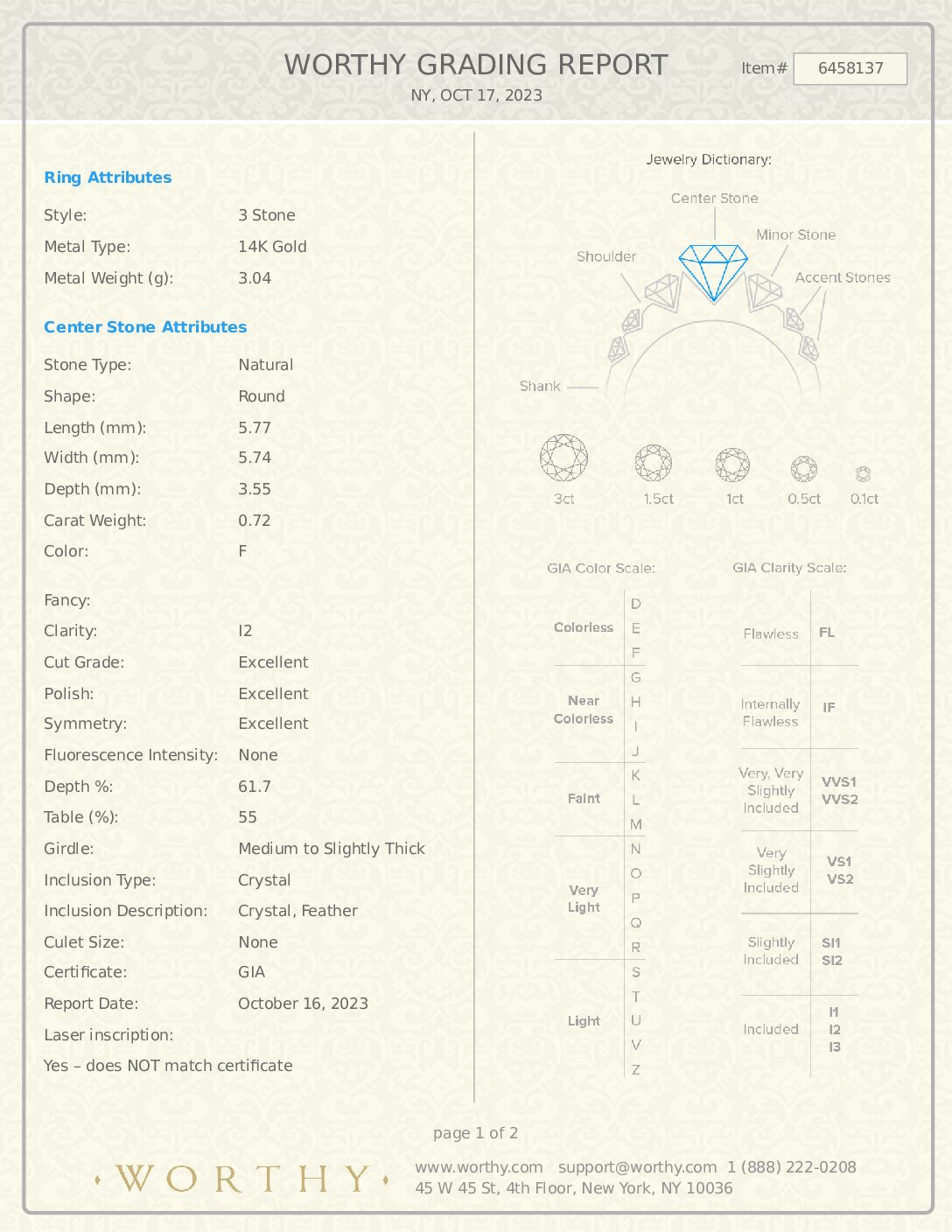 Discover this 1.0 Carat F I2 Round Natural Diamond Ring at Diamocycle. Perfect for buyers seeking best way to sell an engagement ring, Affordable used diamond jewelry, Best diamond grading labs. Affordable lab-grown loose diamonds with GIA certification available. Secure purchase with free shipping.
