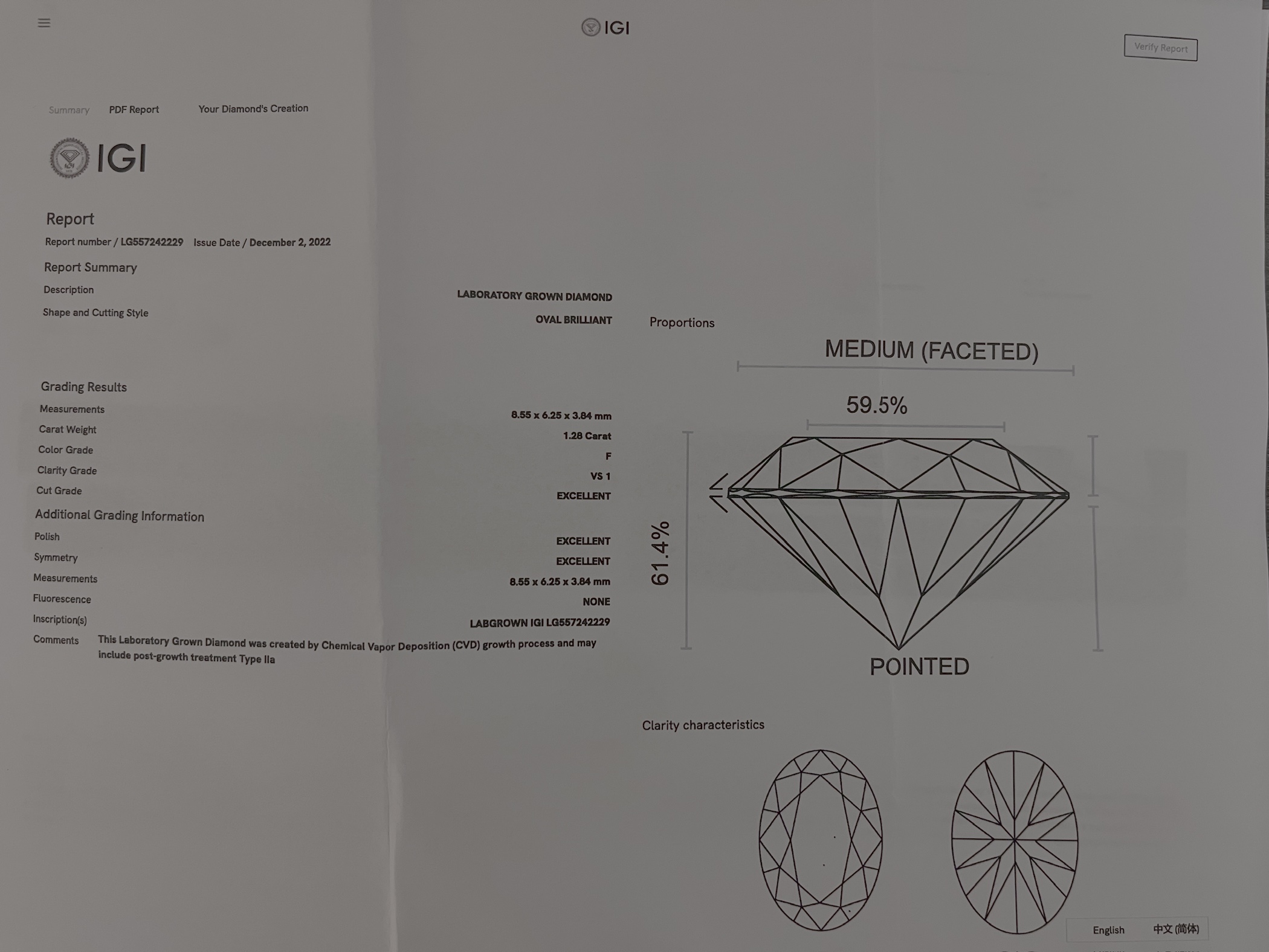 | Clarity | VS1 |