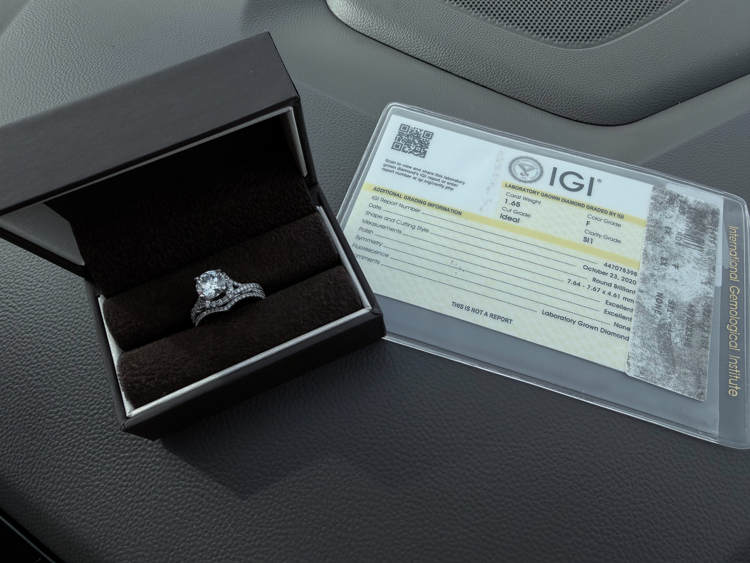 IGI 1.65 Carat F SI1 Round Lab Grown Diamond Ring