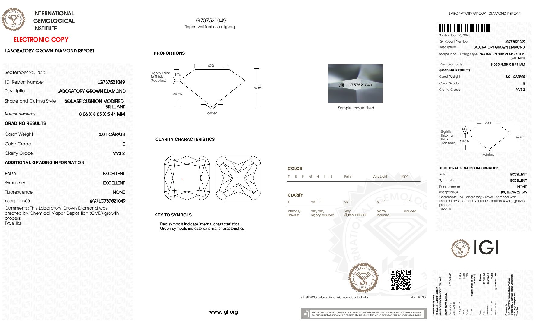 IGI 3.01 Carat E VVS2 Cushion Lab Grown Diamond Loose Diamond