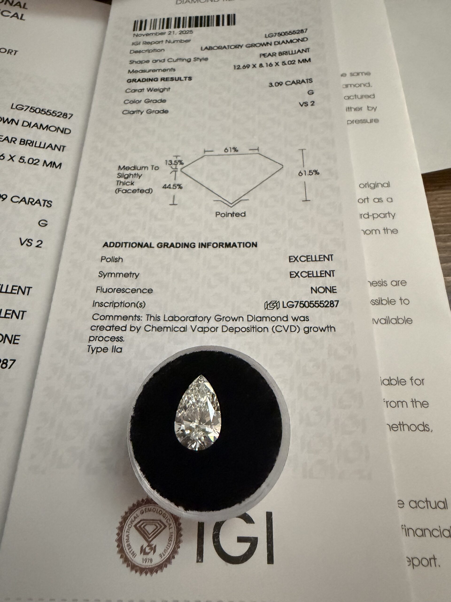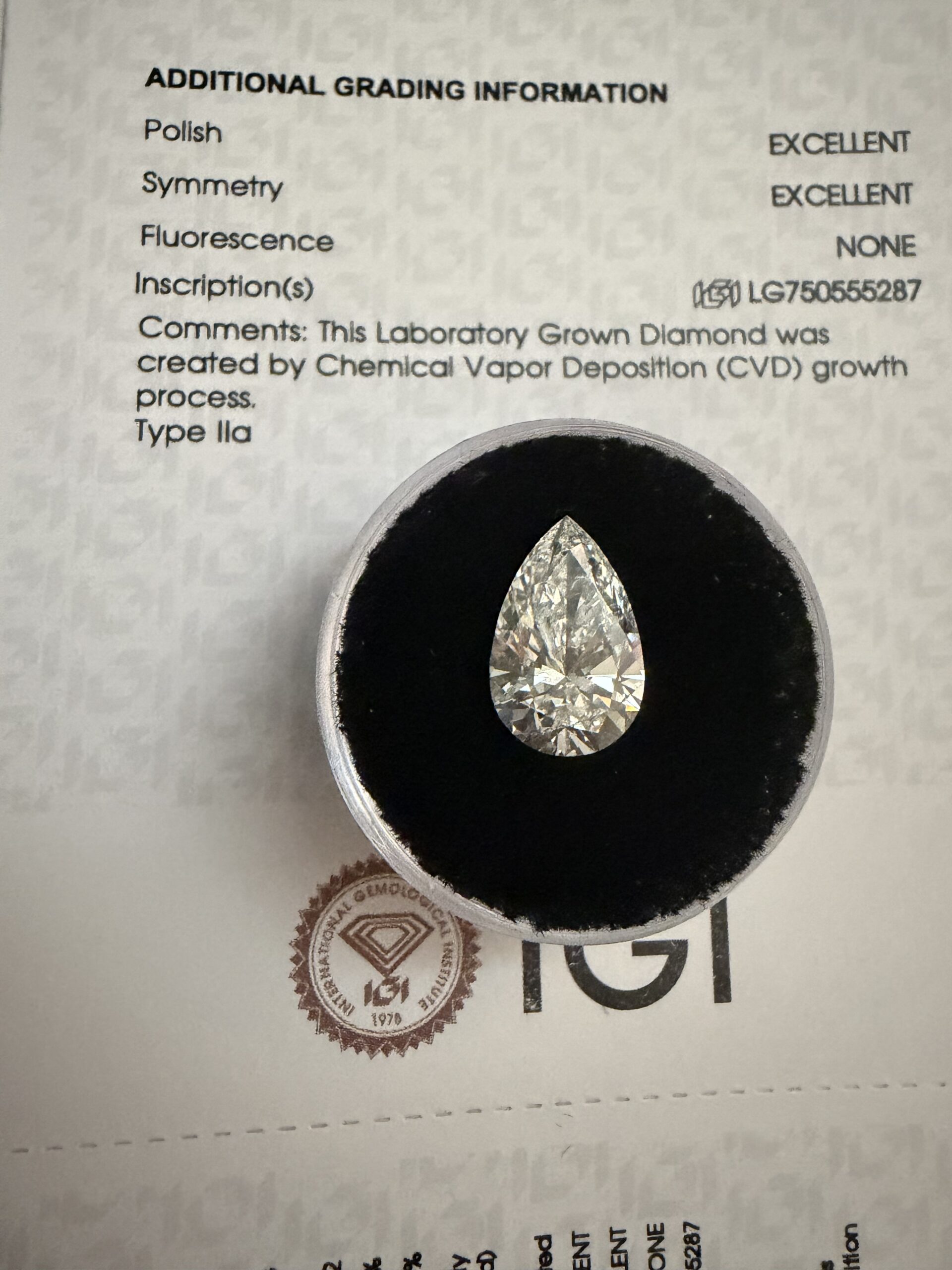 Discover this IGI 3.09 Carat G VS2 Pear Lab Grown Diamond Loose Diamond at Diamocycle. Perfect for buyers seeking how to sell an engagement ring, who buys diamond rings near me, Diamond price trends for 2025. Affordable lab-grown loose diamonds with GIA certification available. Secure purchase with free shipping.